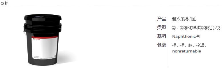 制冷壓縮機油基于極低的蠟環(huán)烷油,用于需要不受阻油的地方。 推薦用于使用氨,CFC(含氯氟烴)和HCFC(氫氯氟烴)制冷劑如R-11,R-12,R-13,R-113,R-114,R-115,R-22的制冷壓縮機 ,R-123,R-141b,R-142b,R-717,R-500,R-501和R-502。不推薦使用HFC(氫氟碳)制冷劑,如HFC-134a(R- 134a)。 Whitmore制冷壓縮機油推薦用于蒸發(fā)器溫度低至-35°F或-37°C的系統(tǒng)。