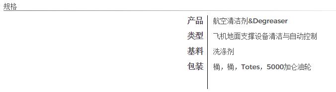 用途廣泛且成本效益高的清潔產(chǎn)品,用于去除飛機(jī)和機(jī)場地面支援設(shè)備中的油、油脂、焦油、鹽、昆蟲、污垢和污垢。該清洗劑是水基、可生物降解和經(jīng)認(rèn)可/批準(zhǔn)的波音d6-17487。